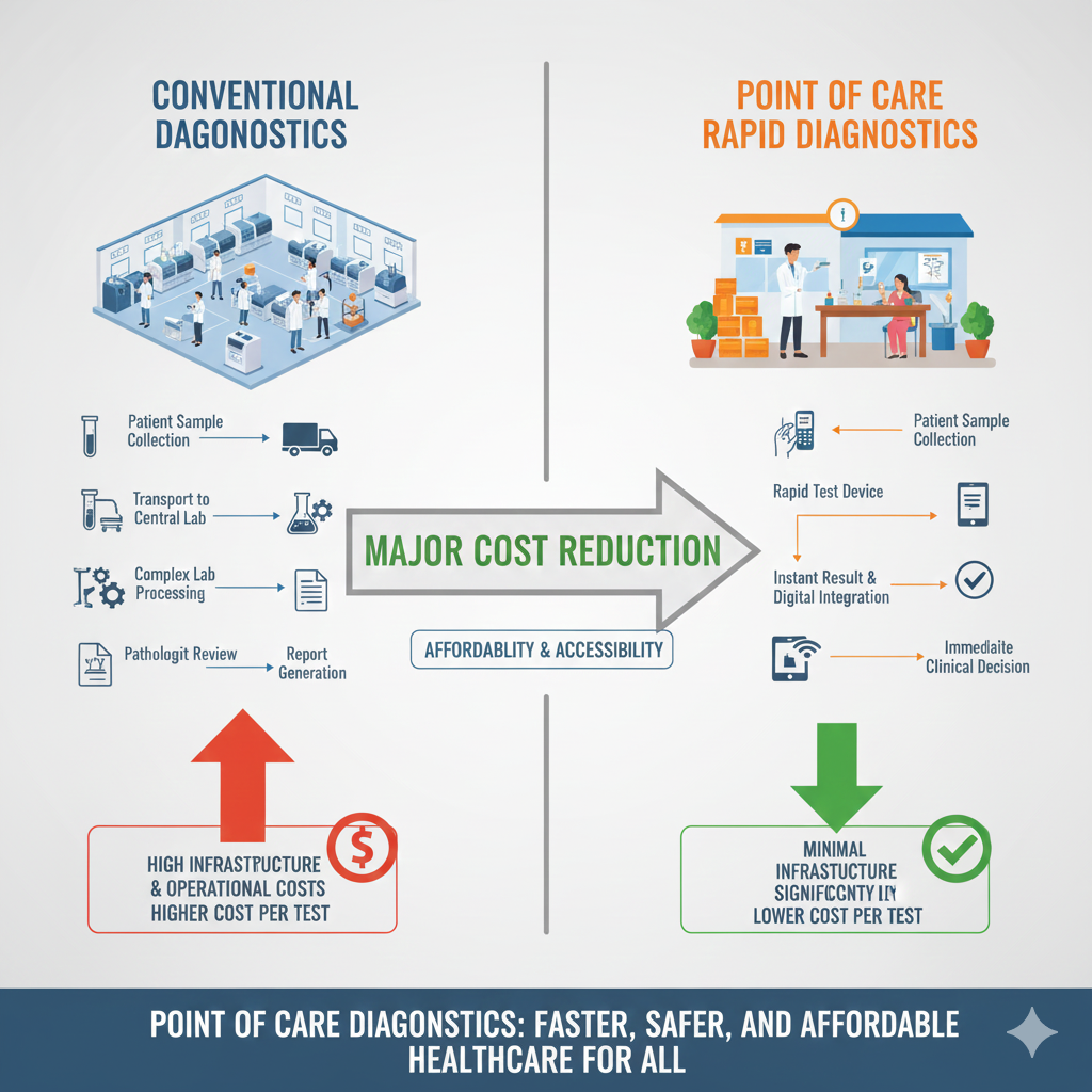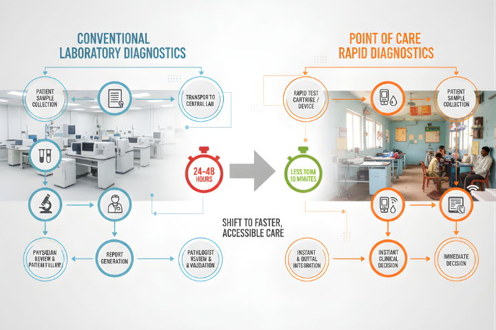 Efficient and Certified Digital Diagnostic tools and Rapid Test at the Point of Care, bring in reduction of Turn Around Time, resolving immediate Diagnostic Requirements of Healthcare Providers & Practitioners in Primary Care Settings, when compared to reports from far off Conventional Laboratory Diagnostics.