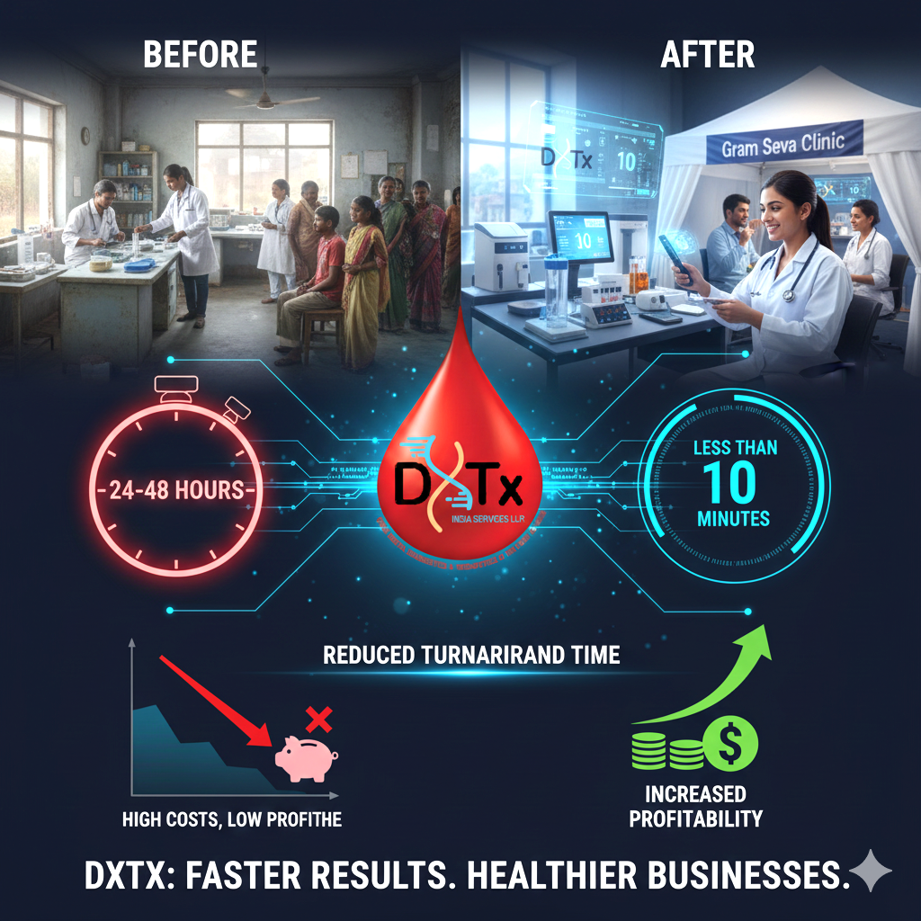 DxTx India Services LLP is pioneering the future of healthcare as India’s first integrated provider of Digital Diagnostics and Therapeutics. We are fundamentally redefining how better health outcome is delivered “ON TIME” right at the Point of Care (POC).