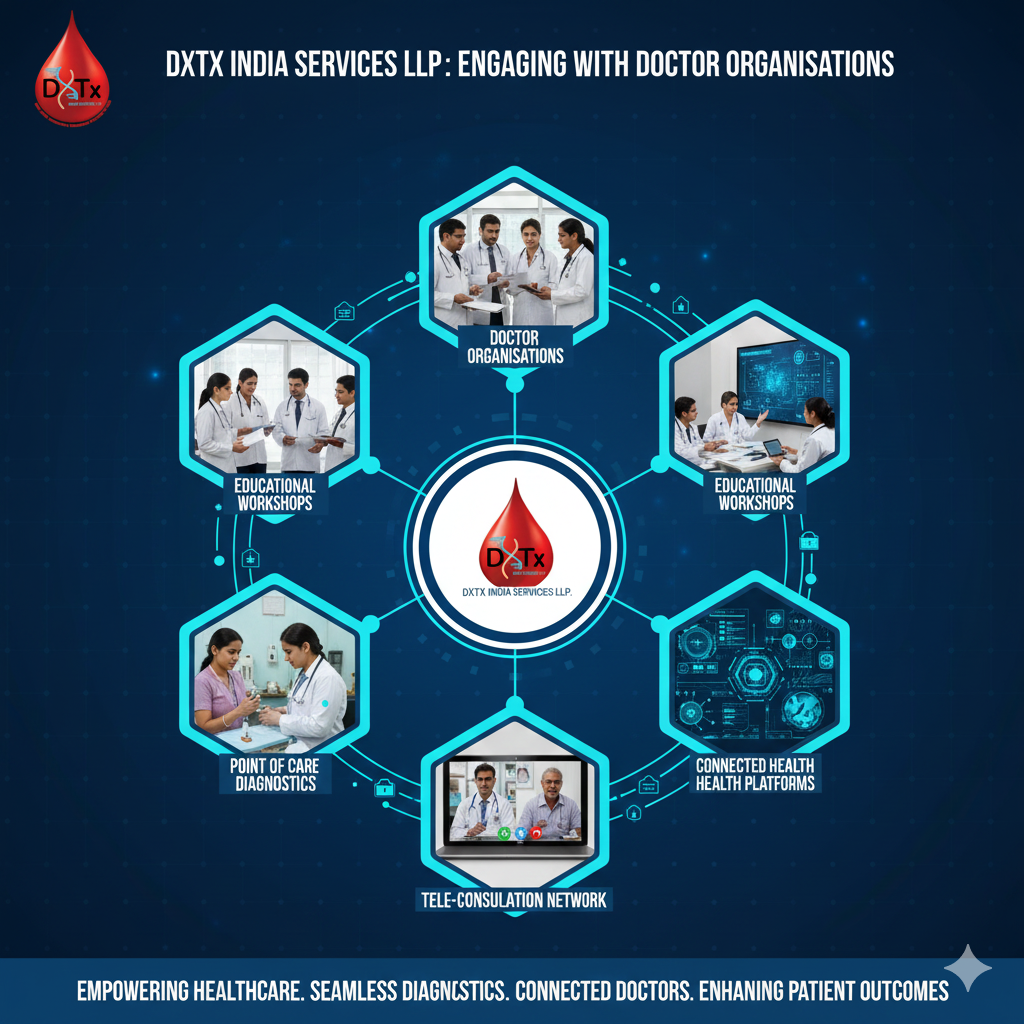 With DXTX India Services LLP. you can bring in quick digital care transformation in the doctor’s clinic. We shall collaborate with you, to co-create an ecosystem that supports the most advanced Certified Point of Care hardware and software applications, coupled with In-Clinic Rapid Diagnostic Tests — fostering long-term digital health surveillance services for the patients in-clinic and outside the clinic.