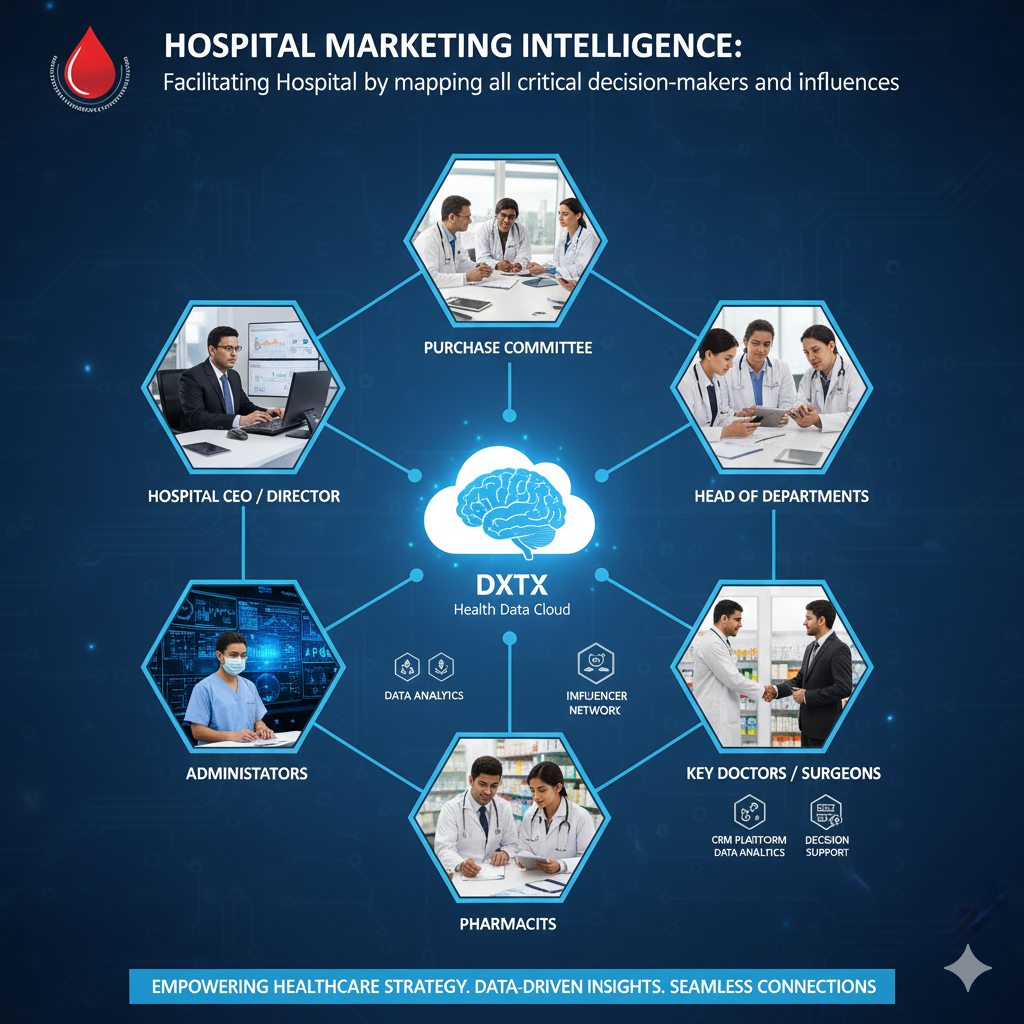 Our business intelligence teams elevate your Customer Relationship Management (CRM) and optimise engagement. We identify and map all critical decision-makers and influencers—including Formulary committees, KOLs, procurement managers, and C-suite executives—within the Indian hospital ecosystem. We provide clear understanding and multiple models of intervention plans to retain, nurture, and develop long-term relationships aligned with your marketing strategies and help you execute the best one.